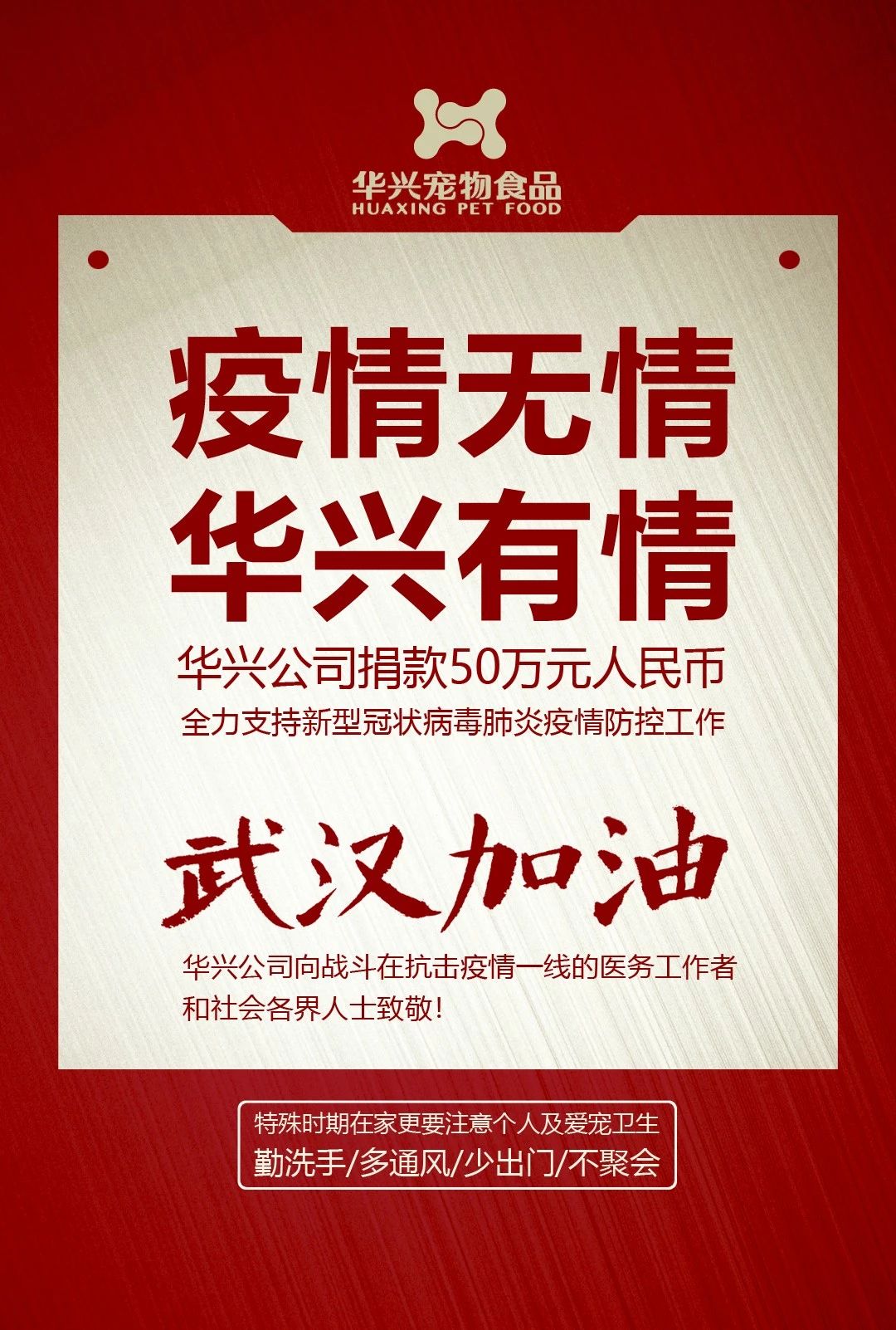 武漢加油,華興公司捐款50萬(wàn)元,全力支持疫情防控工作